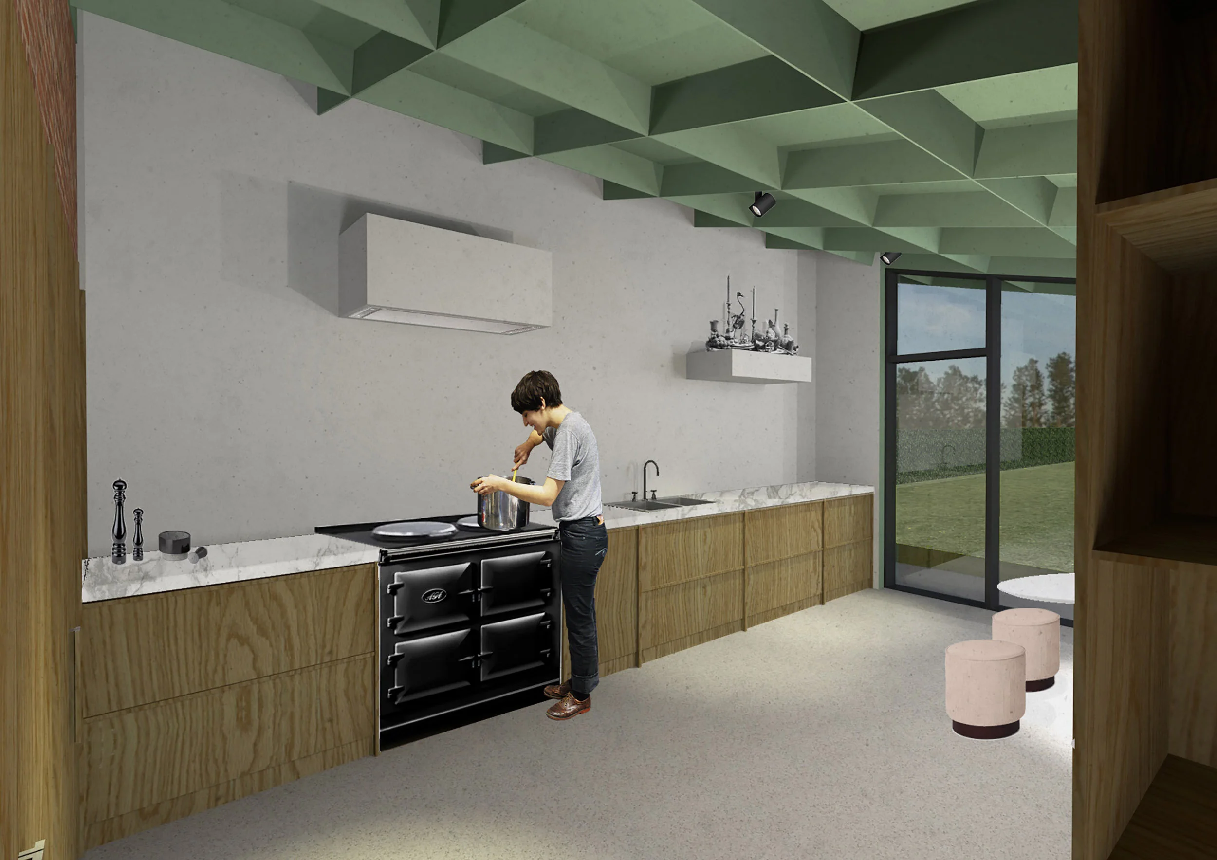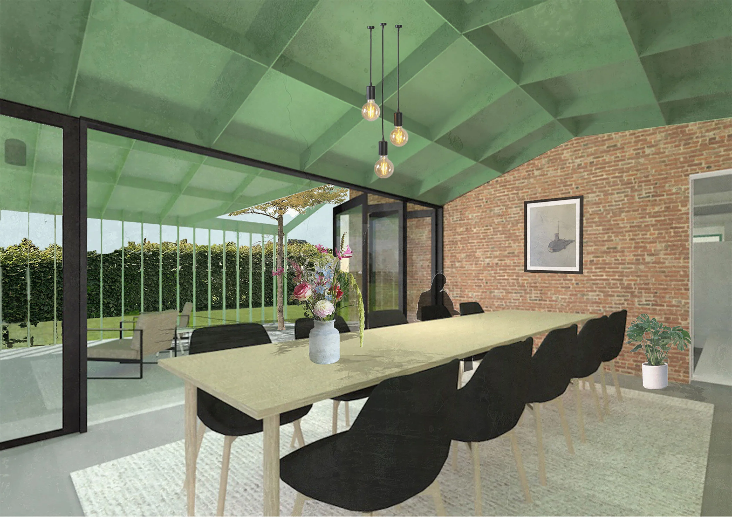 Binnenin wordt de woning grondig verbouwd, waarbij de oorspronkelijke structuur grotendeels behouden blijft.